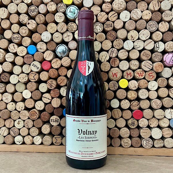 Domaine Monthelie-Douhairet Porcheret Volnay "Les Serpens". From a small family estate with over 300 years of history in Burgundy, this is a fine and lacy Pinot Noir. The wine is made from organic grapes that are harvested and vilified by hand. This is a stellar Volnay that will age beautifully.